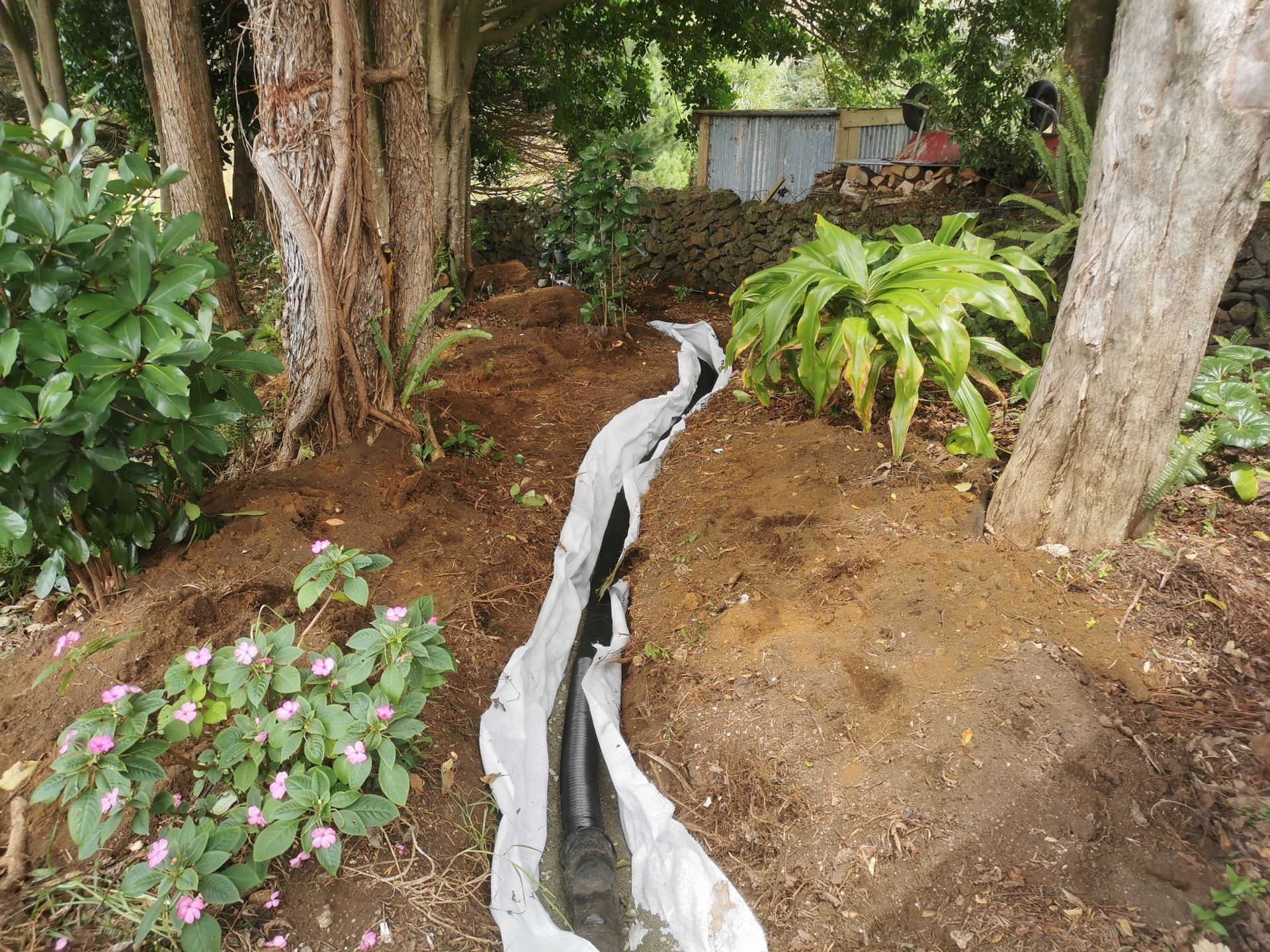 - Pose du tuyau perforé avec pente calculée vers l'exutoire